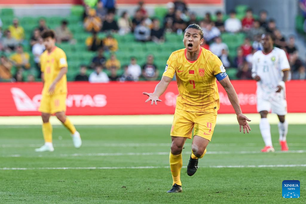 Zhang Yuning of China reacts during the FIFA Series 2026 International Friendly Match between China and Cameroon in Melbourne, Australia, March 31, 2026. (Photo by Jin Cheng/Xinhua)