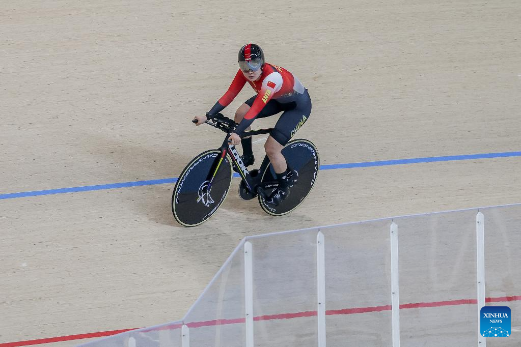 Luo Xuehuang of China competes during the women elite - 1km time trial qualification at the 2026 Asian Track Championships in Tagaytay City, the Philippines, on March 31, 2026. (Xinhua/Rouelle Umali)