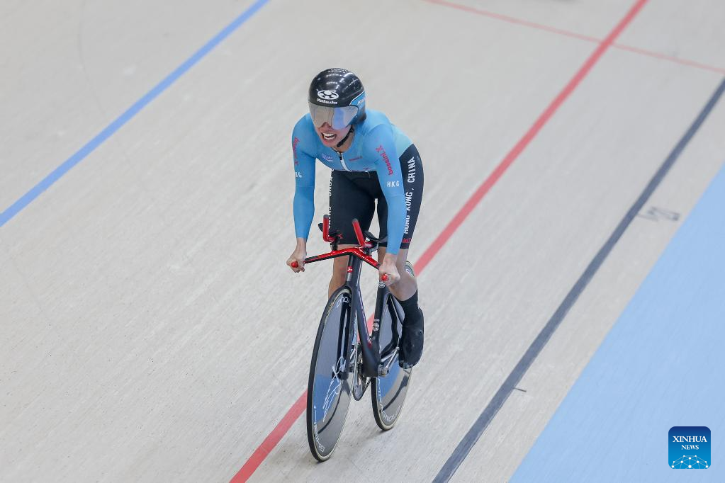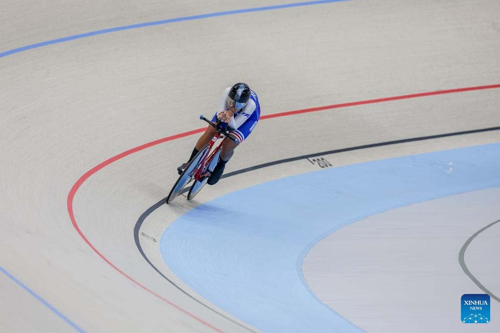 Phoebe Tung of China's Hong Kong competes during the women elite - 1km time trial qualification at the 2026 Asian Track Championships in Tagaytay City, the Philippines, on March 31, 2026. (Xinhua/Rouelle Umali)