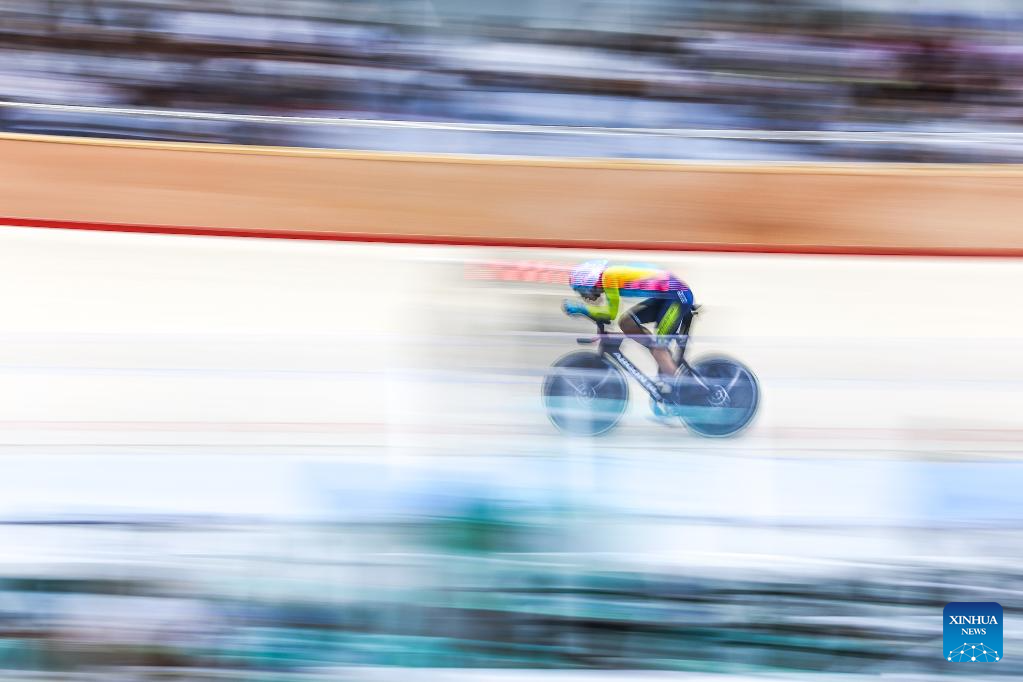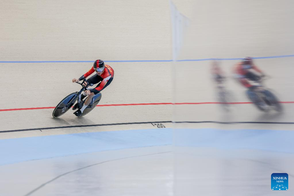 Xie Han of China competes during the men elite - 1km time trial qualification at the 2026 Asian Track Championships in Tagaytay City, the Philippines, on March 31, 2026. (Xinhua/Rouelle Umali)