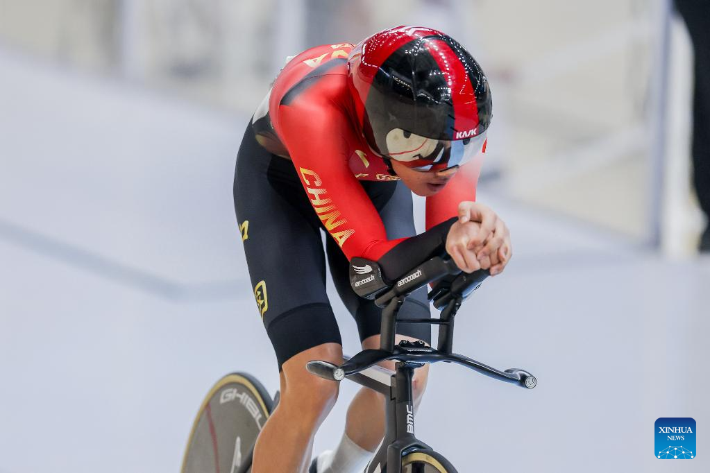Ding Aonan of China competes during the women junior - individual pursuit qualification at the 2026 Asian Track Championships in Tagaytay City, the Philippines, on March 31, 2026. (Xinhua/Rouelle Umali)