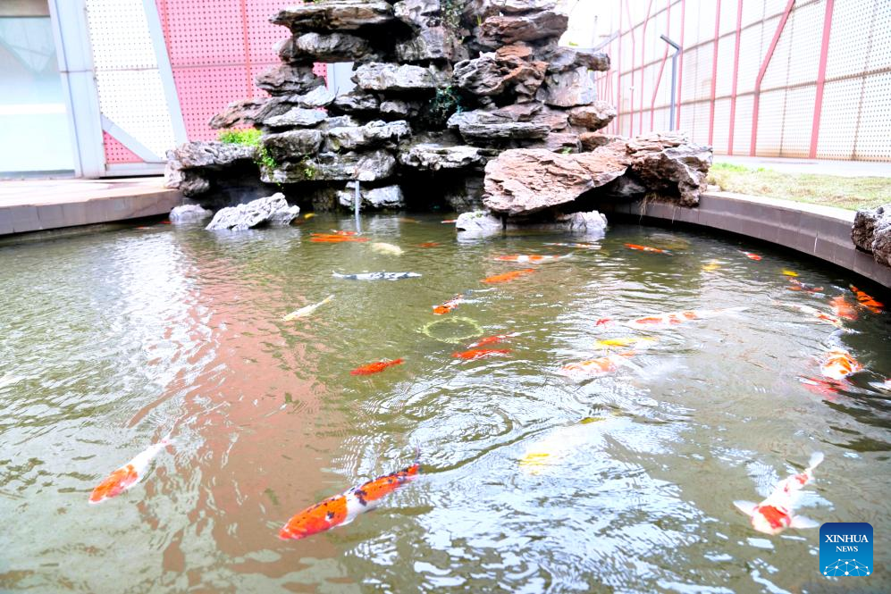 This photo taken on March 30, 2026 shows a pond of ornamental fish using treated wastewater from industrial production at a steel plant in Hukou High-Tech Industrial Park in Jiujiang City, east China's Jiangxi Province. (Photo by Peng Yi/Xinhua)