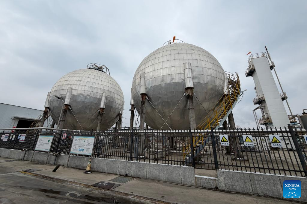 This photo taken on Jan. 21, 2026 shows a waste carbon dioxide recovery facility in the petrochemical industrial park of Jiujiang Economic and Technological Development Zone in Jiujiang City, east China's Jiangxi Province. (Xinhua/Chen Zhuzuo)