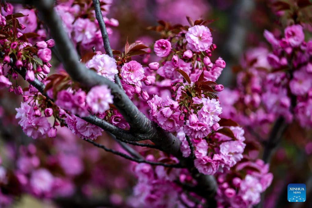 Cherry blossoms are seen at the Castle Hill in Budapest, Hungary, April 2, 2026. (Photo by David Balogh/Xinhua)