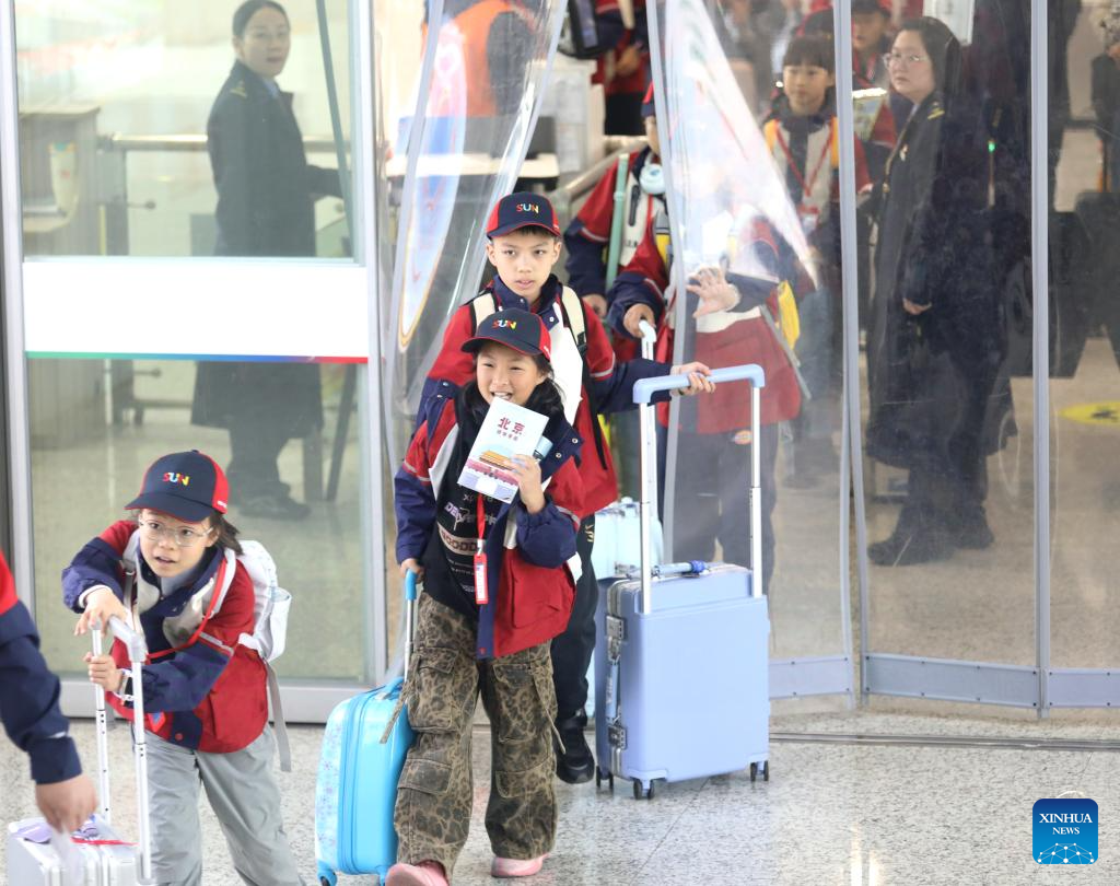 Students line up for a trip at Changzhou North Railway Station in Changzhou, east China's Jiangsu Province, April 1, 2026. As spring blossoms across China, primary and secondary school students in several regions are set for their first-ever spring break, which will see them heading beyond the classroom to travel and engage in a wide range of activities. (Photo by Chen Wei/Xinhua)