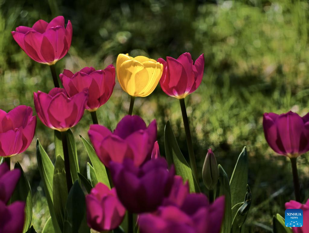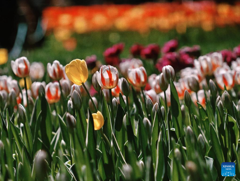 This photo taken on April 10, 2026 shows tulip flowers at Zhongshan Park in Beijing, capital of China. (Xinhua/Xing Guangli)