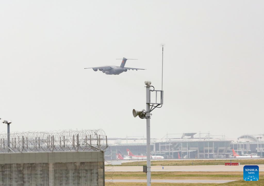 A Y-20B transport aircraft carrying the remains and personal effects of 12 Chinese People's Volunteers soldiers who lost their lives during the War to Resist U.S. Aggression and Aid Korea (1950-1953) takes off from Incheon International Airport for China, in Incheon, South Korea, April 22, 2026. (Xinhua/Yao Qilin)