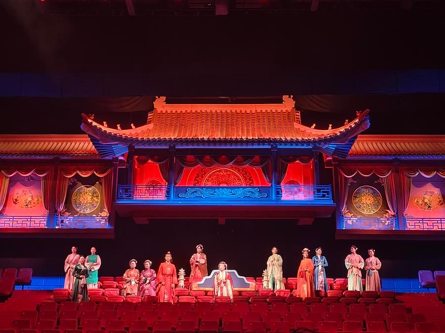 Named "Unique Dream of Red Mansion," this theater complex features 21 innovative plays, including those inspired by the seminal 18th-century book "A Dream of Red Mansions" and independent plays. In one theater, the audience members stand on a stage while characters from the book observe them from spectator seats as if gazing upon the afterlife, while in another show, many female figures in the novel confront the author over the cruel twists of fate he penned for them.