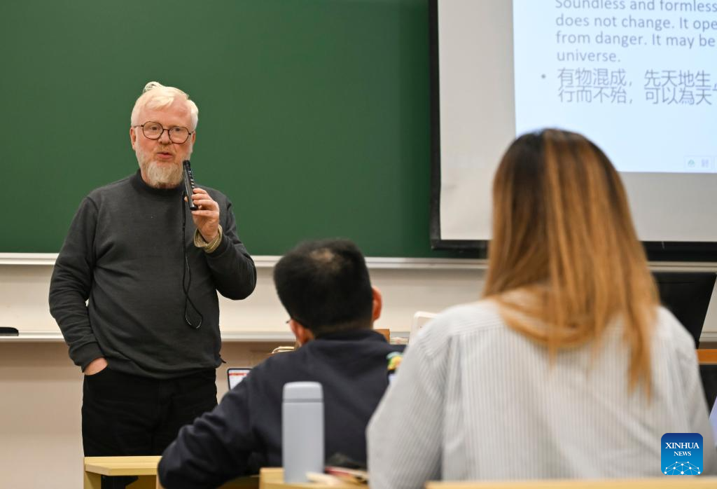 Benoît Vermander delivers a lecture on the Tao Te Ching to his students at Fudan University in Shanghai, east China, April 22, 2026. (Xinhua/Liu Ying)