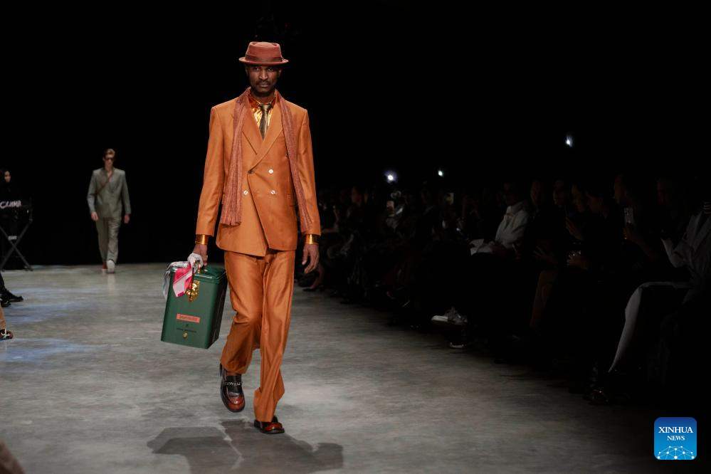 A model presents a creation during the South African Fashion Week in Johannesburg, South Africa, April 25, 2026. (Photo by Ihsaan Haffejee/Xinhua)