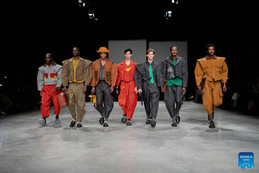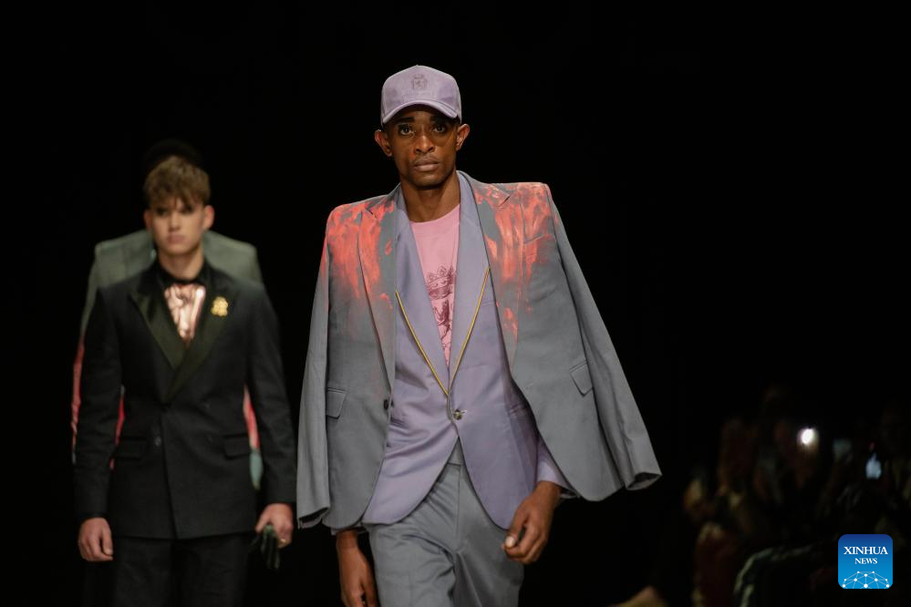 Models present creations during the South African Fashion Week in Johannesburg, South Africa, April 25, 2026. (Photo by Ihsaan Haffejee/Xinhua)