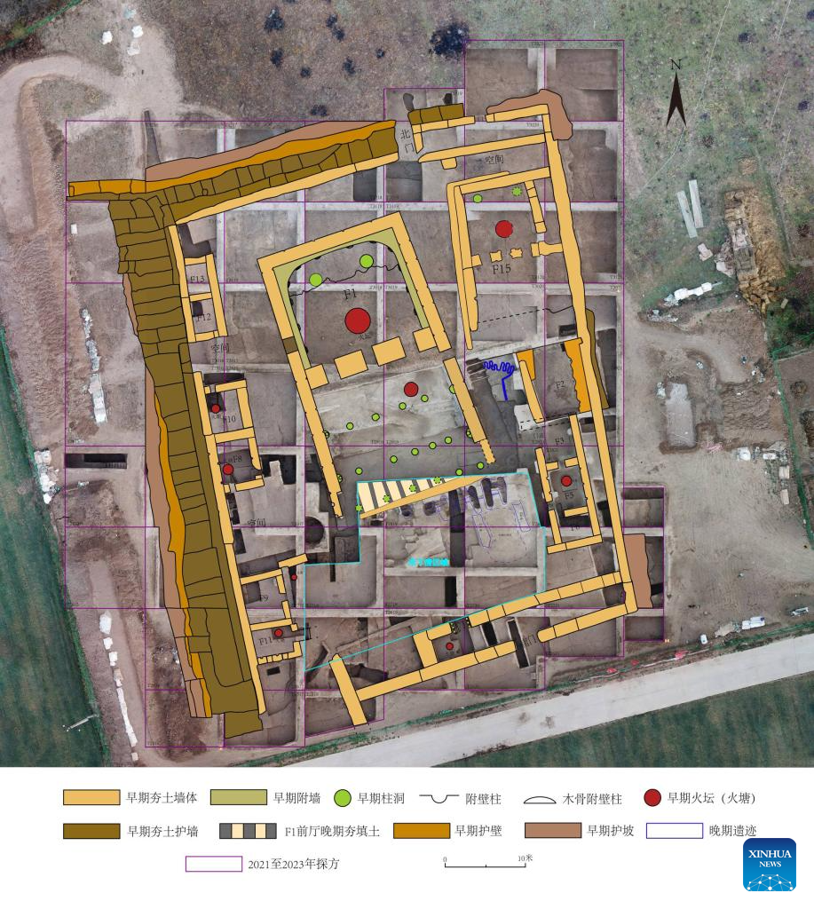 Further west, the Nanzuo Site in northwest China's Gansu Province has been recognized as a peak example of the late Yangshao Culture. The site, spanning about 6 million square meters, features a large, rammed-earth compound at its core and a multi-layered settlement layout.