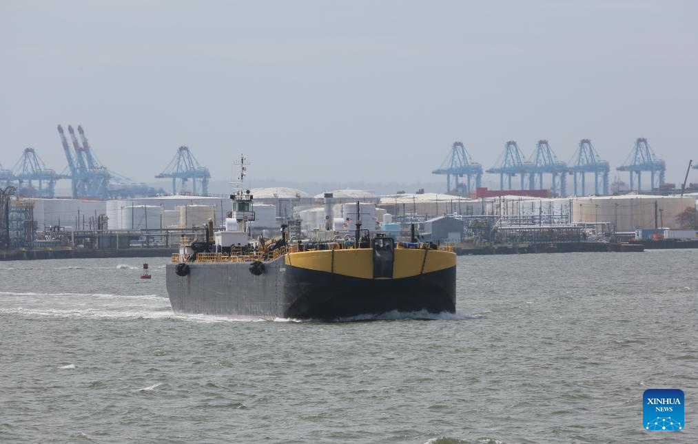A vessel leaves the Port of New York and New Jersey, the United States, on April 29, 2026. Oil prices climbed on Wednesday. West Texas Intermediate crude for June delivery surged 6.95 U.S. dollars, or 6.95 percent, to settle at 106.88 dollars a barrel on the New York Mercantile Exchange. Brent crude for June delivery jumped 6.77 dollars, or 6.08 percent, to close at 118.03 dollars a barrel on the London ICE Futures Exchange. (Xinhua/Zhang Fengguo)