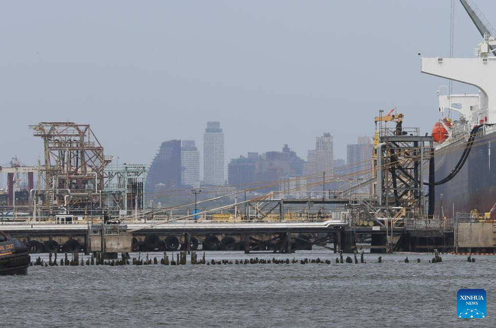 This photo taken on April 29, 2026 shows oil pipelines at the Port of New York and New Jersey, the United States. Oil prices climbed on Wednesday. West Texas Intermediate crude for June delivery surged 6.95 U.S. dollars, or 6.95 percent, to settle at 106.88 dollars a barrel on the New York Mercantile Exchange. Brent crude for June delivery jumped 6.77 dollars, or 6.08 percent, to close at 118.03 dollars a barrel on the London ICE Futures Exchange. (Xinhua/Zhang Fengguo)