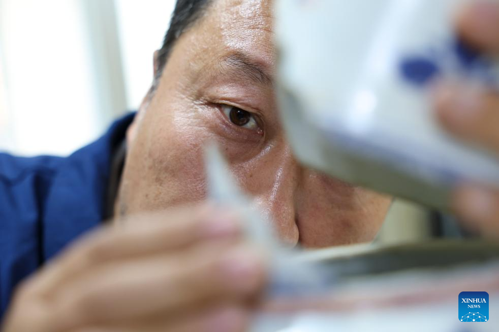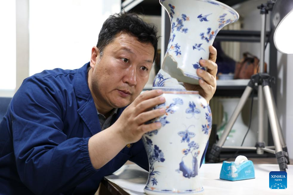 Xu Kai restores a cultural relic at a studio in Taiyuan, north China's Shanxi Province, April 29, 2026. Xu Kai is a ceramic cultural relics restoration specialist at Shanxi Museum. With 27 years of experience in the field, the 48-year-old has breathed new life into countless precious artifacts, ranging from Neolithic pottery to official kiln porcelain of the Ming (1368-1644) and Qing (1644-1911) dynasties.