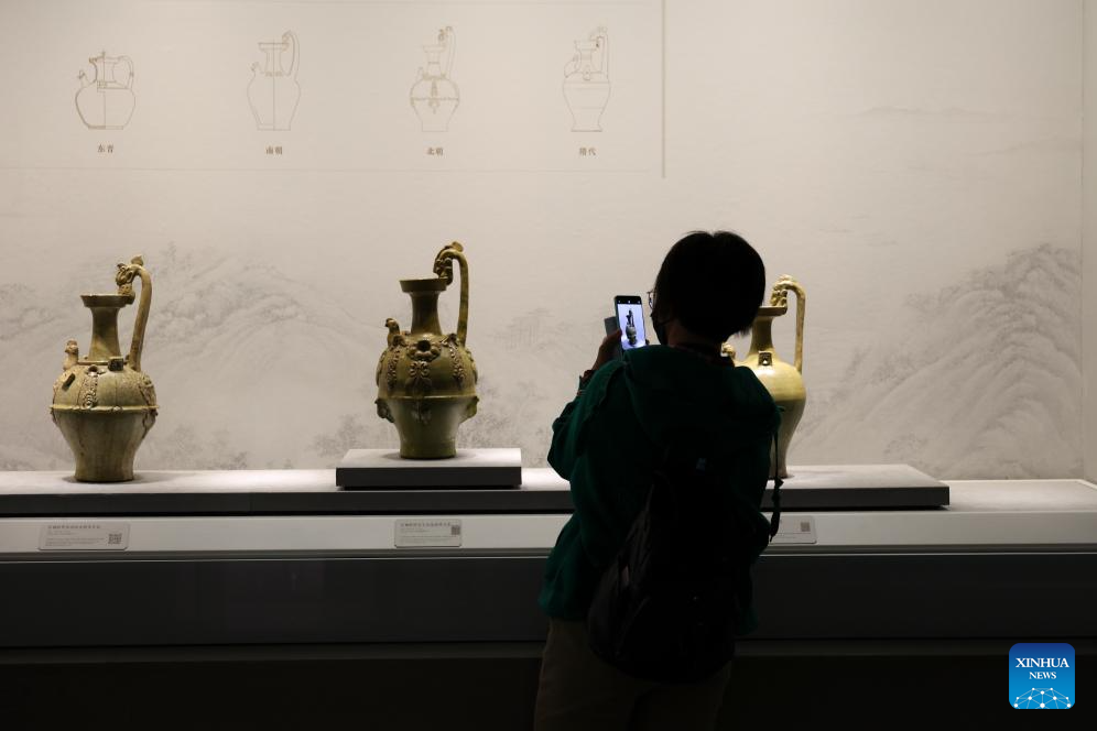 A visitor takes a photo of an exhibit at Shanxi Museum in Taiyuan, north China's Shanxi Province, April 29, 2026. (Xinhua/Yang Chenguang)