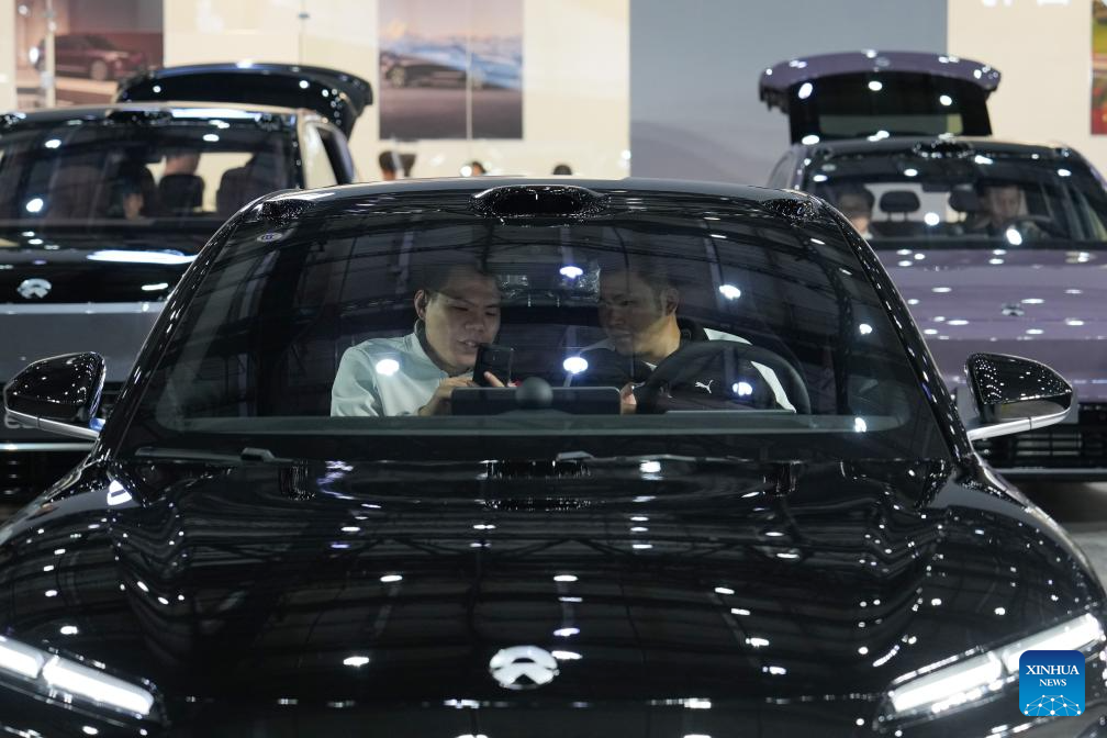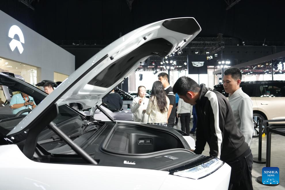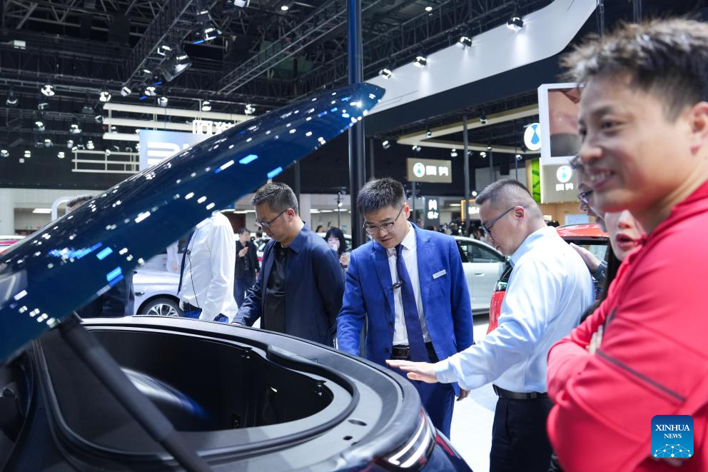 Visitors learn about a car displayed at the 2026 Hunan Auto Show in Changsha, central China's Hunan Province, April 30, 2026. The 2026 Hunan Auto Show, with an exhibition area of more than 60,000 square meters, kicked off on Thursday at Hunan International Convention and Exhibition Center in Changsha. The auto show will run until May 5. (Xinhua/Chen Zhenhai)