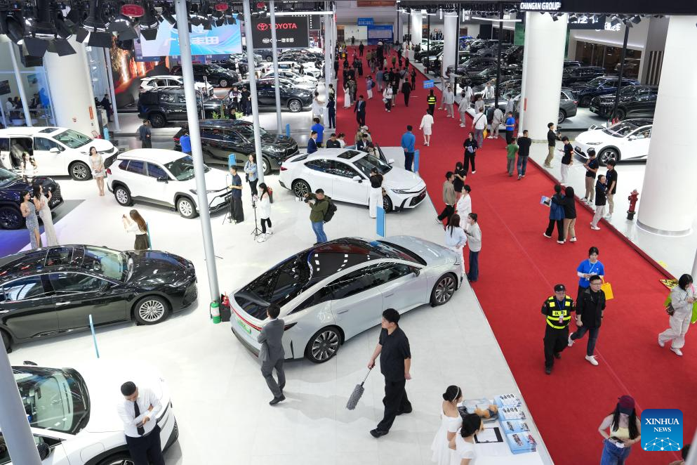 People visit the 2026 Hunan Auto Show in Changsha, central China's Hunan Province, April 30, 2026. The 2026 Hunan Auto Show, with an exhibition area of more than 60,000 square meters, kicked off on Thursday at Hunan International Convention and Exhibition Center in Changsha. The auto show will run until May 5. (Xinhua/Chen Zhenhai)