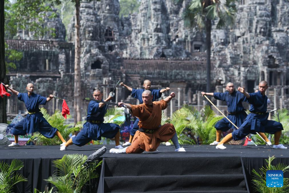 The Cambodia-China martial arts performance was held at the UNESCO-listed Angkor Archaeological Park here in northwest Cambodia on Thursday, attracting crowds of domestic and foreign tourists.