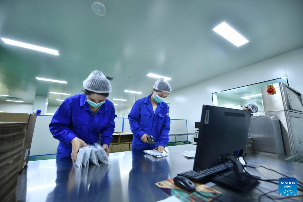 Employees work on a production line of Guangxi Liuyao Group Co., Ltd., a pharmaceutical company, in Liuzhou City, south China's Guangxi Zhuang Autonomous Region, Sept. 21, 2023. In recent years, Liuzhou has been promoting the cultivation and expansion of emerging industries such as new-energy, intelligent equipment and smart home appliances manufacturing, biomedicine and new-generation information technology. (Xinhua/Huang Xiaobang)