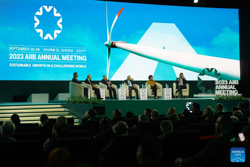 People attend the opening of the eighth annual meeting of the Asian Infrastructure Investment Bank (AIIB) in Sharm El-Sheikh, Egypt, on Sept. 25, 2023. (AIIB/Handout via Xinhua)