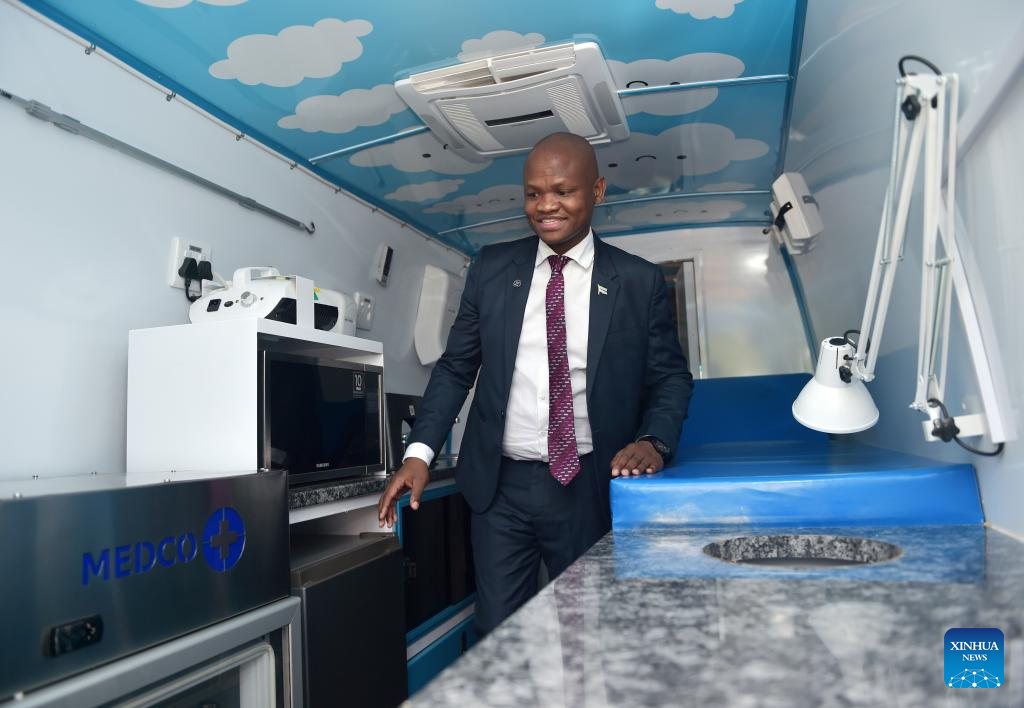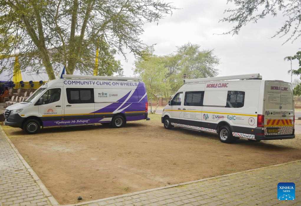 The four mobile clinics will enable implementing partners to provide a range of integrated health care services, including HIV testing, pre-exposure prophylaxis for HIV prevention, antiretroviral treatment, viral load testing, tuberculosis screening and prevention, gender-based violence screening, post-violence clinical services, sexually transmitted infection screening and treatment, and non-communicable disease screening and treatment. (Photo by Tshekiso Tebalo/Xinhua)