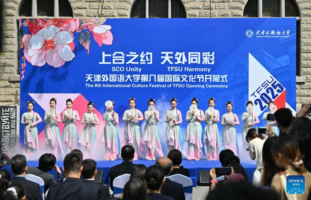 A performance is staged during the 8th International Culture Festival of Tianjin Foreign Studies University in north China's Tianjin, April 20, 2025. More than 300 students and teachers from over 60 countries and regions participated in the festival. (Xinhua/Sun Fanyue)