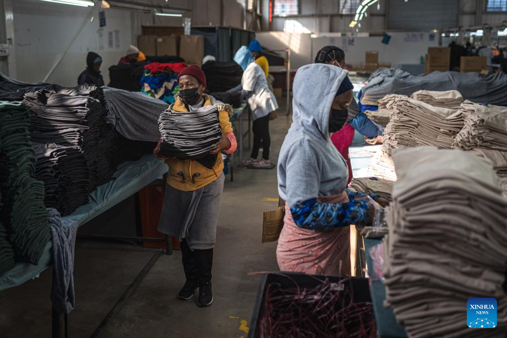 Workers arrange clothes at a textile factory in Maseru, Lesotho, July 30, 2025. (Xinhua/Wang Guansen)