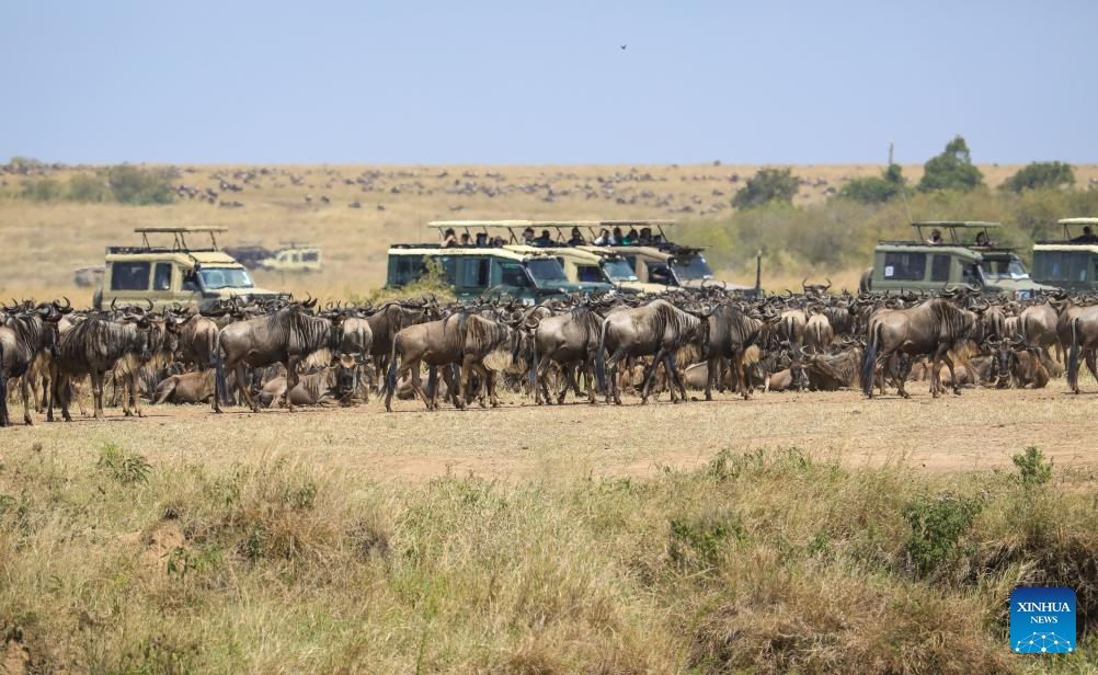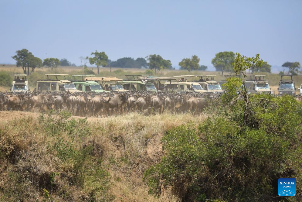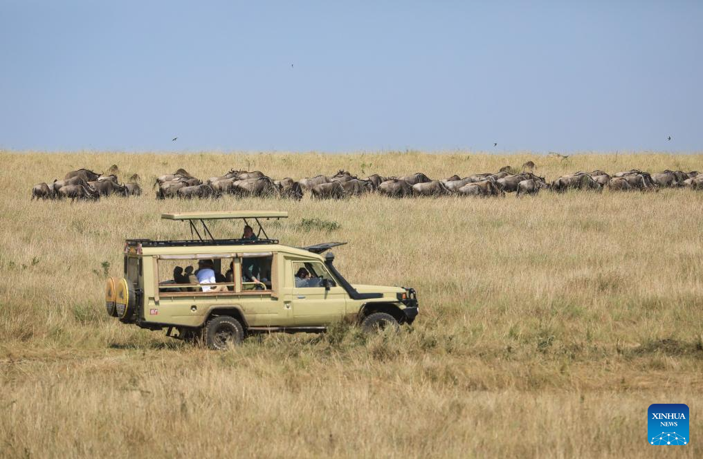 Tourists explore the Masai Mara National Reserve in Kenya, July 30, 2025. Tourists flock to the Masai Mara National Reserve during the country's peak tourism season from June to October to watch the wildebeest migration. (Xinhua/Han Xu)