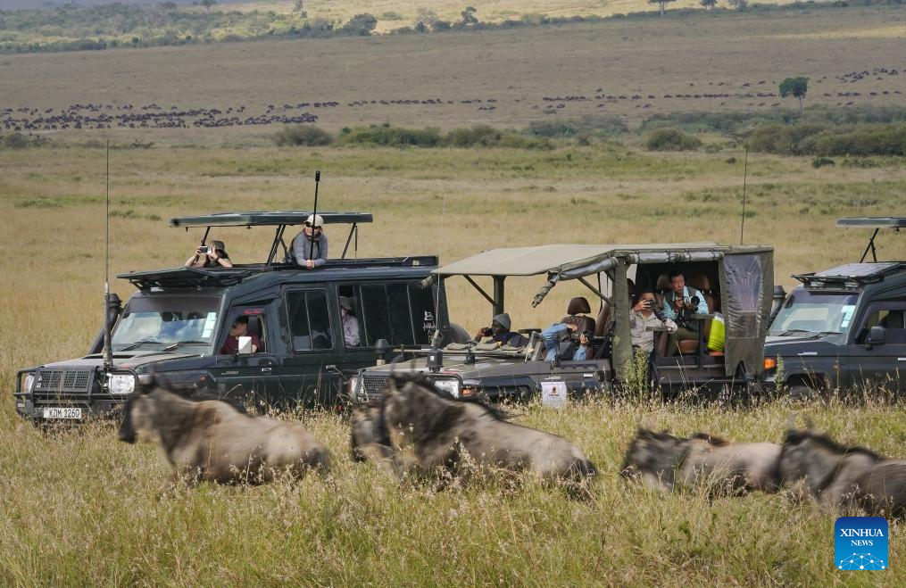 Tourists explore the Masai Mara National Reserve in Kenya, July 31, 2025. Tourists flock to the Masai Mara National Reserve during the country's peak tourism season from June to October to watch the wildebeest migration. (Xinhua/Han Xu)