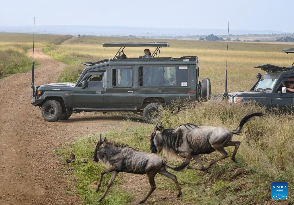 A tourist jeep travels in the Masai Mara National Reserve in Kenya, Aug. 1, 2025. Tourists flock to the Masai Mara National Reserve during the country's peak tourism season from June to October to watch the wildebeest migration. (Xinhua/Han Xu)