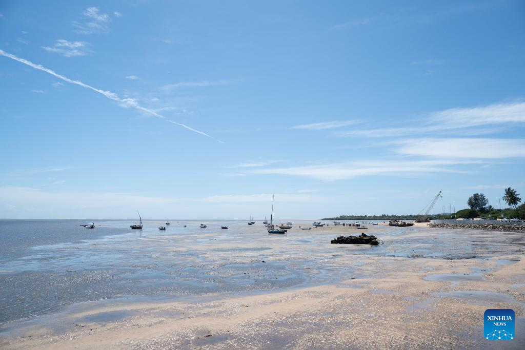 This photo taken on March 6, 2026 shows the shallow waters near Inhaca Island in Maputo Bay, Mozambique. The newly completed jetty bridge, with a total length of about 1.3 km, allows passenger vessels to dock under different tidal conditions. Visitors can now reach the island directly via the jetty, improving the safety and efficiency of passenger transport. (Xinhua/Liu Jie)