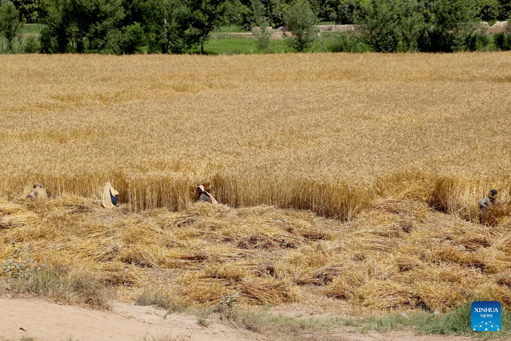 A farmer harvests wheat at a field in Multan, Pakistan on April 20, 2025. (Photo by Mansoor Abbas/Xinhua)