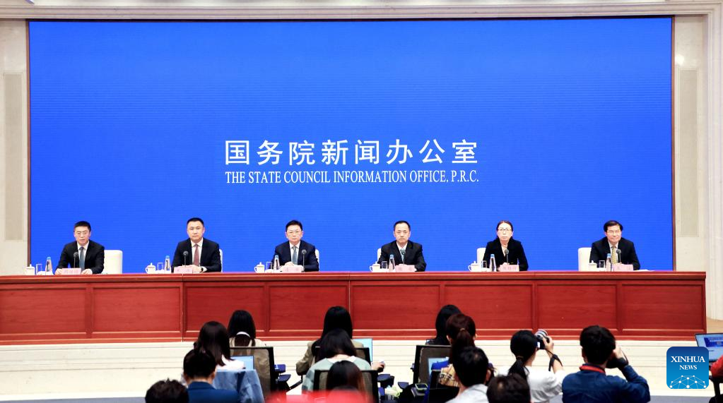 The State Council Information Office holds a press conference on the Work Plan for Accelerating the Comprehensive Pilot Program for Expanding Opening-up of the Service Sector in Beijing, capital of China, April 21, 2025. (Xinhua/Pan Xu)
