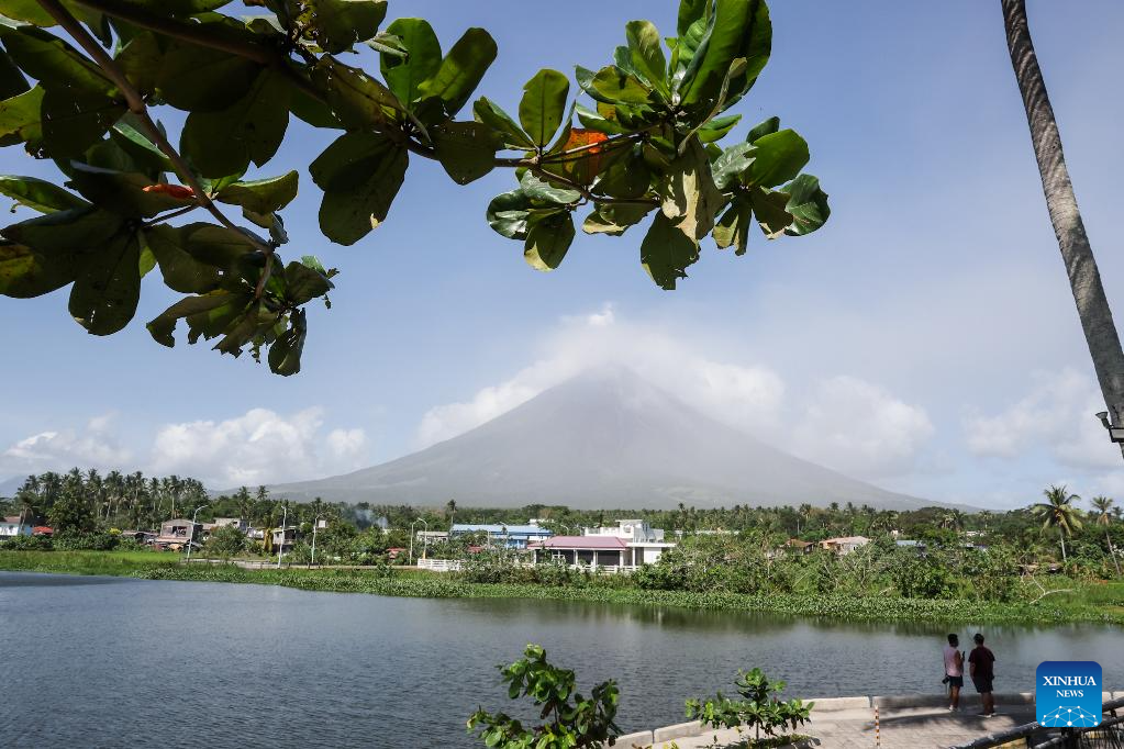 Smoke and ash plumes rise from Mayon Volcano in Albay Province, the Philippines-Xinhua