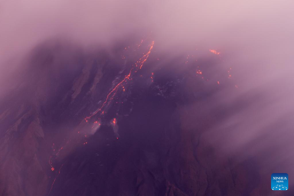 Lava is seen on the surface of Mayon Volcano in Albay Province, the Philippines, Jan. 22, 2026. Mayon Volcano has been in a state of unrest again in recent weeks. (Xinhua/Rouelle Umali)