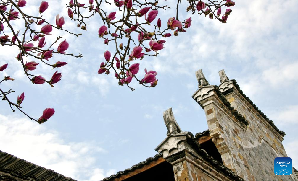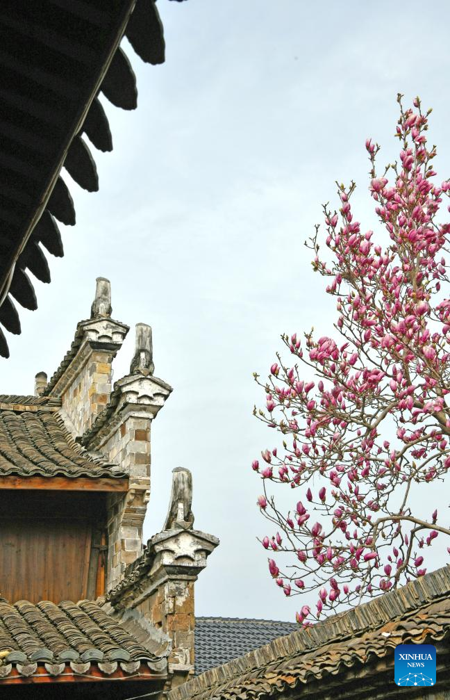 This photo taken on Feb. 26, 2026 shows magnolia flowers in Xianju County of Taizhou, east China's Zhejiang Province. (Photo by Wang Huabin/Xinhua)