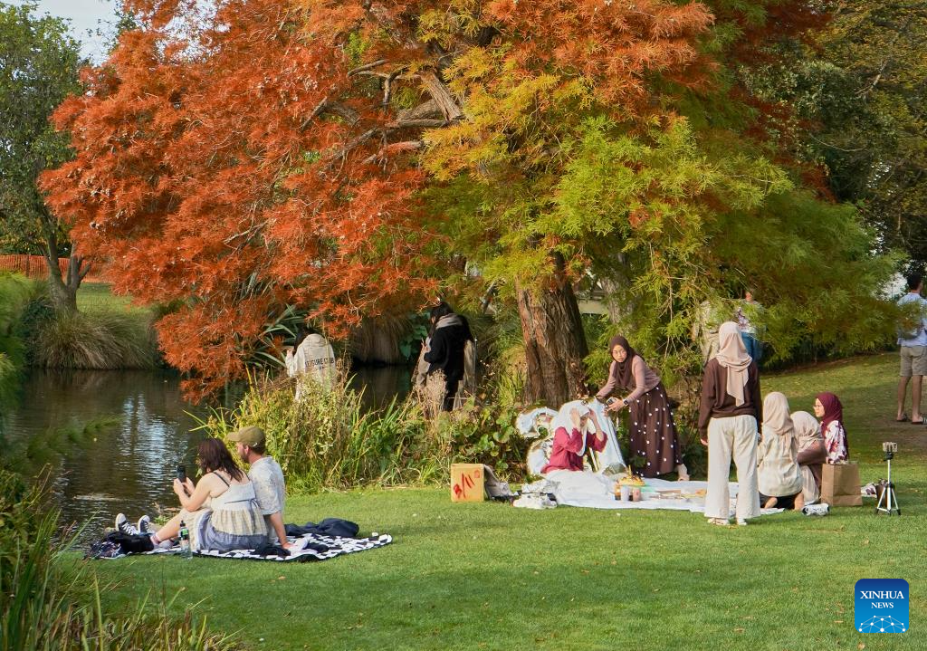 Tourists spend leisure time at Mona Vale Garden in Christchurch of New Zealand's South Island on April 25, 2026. (Photo by Chen Siyumeng/Xinhua)