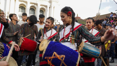 Girls participate in puberty ceremony in Lalitpur, Nepal