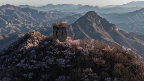 Spring scenery of Great Wall in Qianxi, China's Hebei