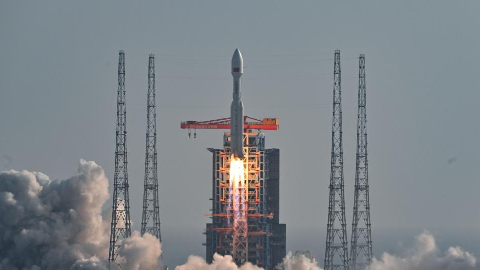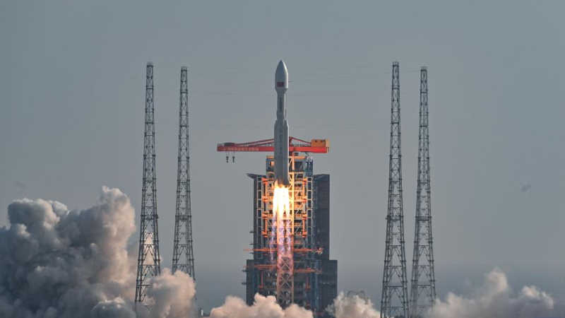 China launched a Long March-8A carrier rocket on Saturday in the southern island province of Hainan, sending a group of internet satellites into space.