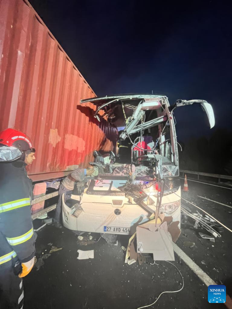 ANKARA, Dec. 6 (Xinhua) -- At least seven people were killed and 11 others injured on Saturday when a passenger bus rear-ended a stationary truck on a main highway in Türkiye's southeastern Osmaniye province, semi-official Anadolu Agency reported.