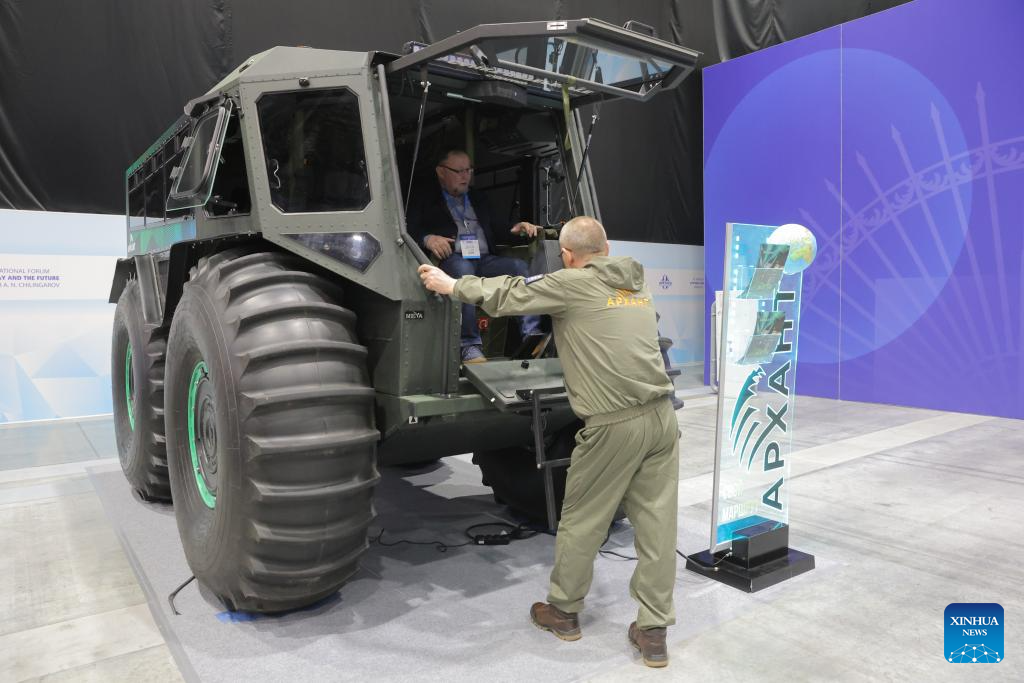 An Arctic all-terrain vehicle is displayed at an exhibition during the 15th International Forum Arctic: Today and the Future in St. Petersburg, Russia, Dec. 9, 2025. (Photo by Irina Motina/Xinhua)