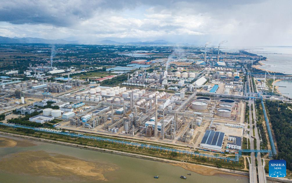 This photo taken on Nov. 7, 2025 shows a view of a factory of the China National Offshore Oil Corporation (CNOOC) in Dongfang Lingang Industrial Park in south China's Hainan Province. China's Hainan Free Trade Port (FTP) is preparing for island-wide special customs operations, a major milestone in the opening-up drive of the world's second-largest economy despite rising protectionism worldwide.