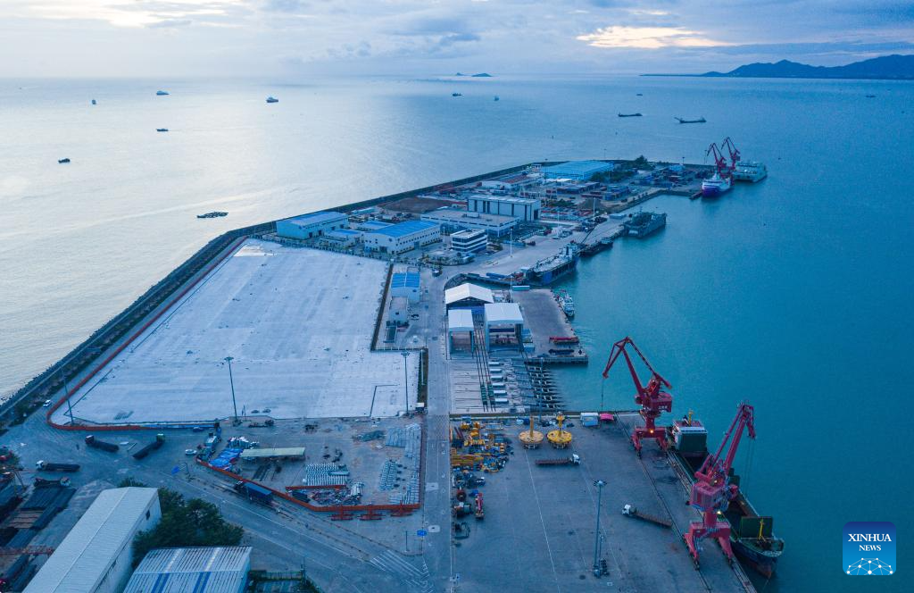 This photo taken on Nov. 22, 2025 shows a view of a shipbuilding company in Lingao Jinpai Port Development Zone, south China's Hainan Province. China's Hainan Free Trade Port (FTP) is preparing for island-wide special customs operations, a major milestone in the opening-up drive of the world's second-largest economy despite rising protectionism worldwide.