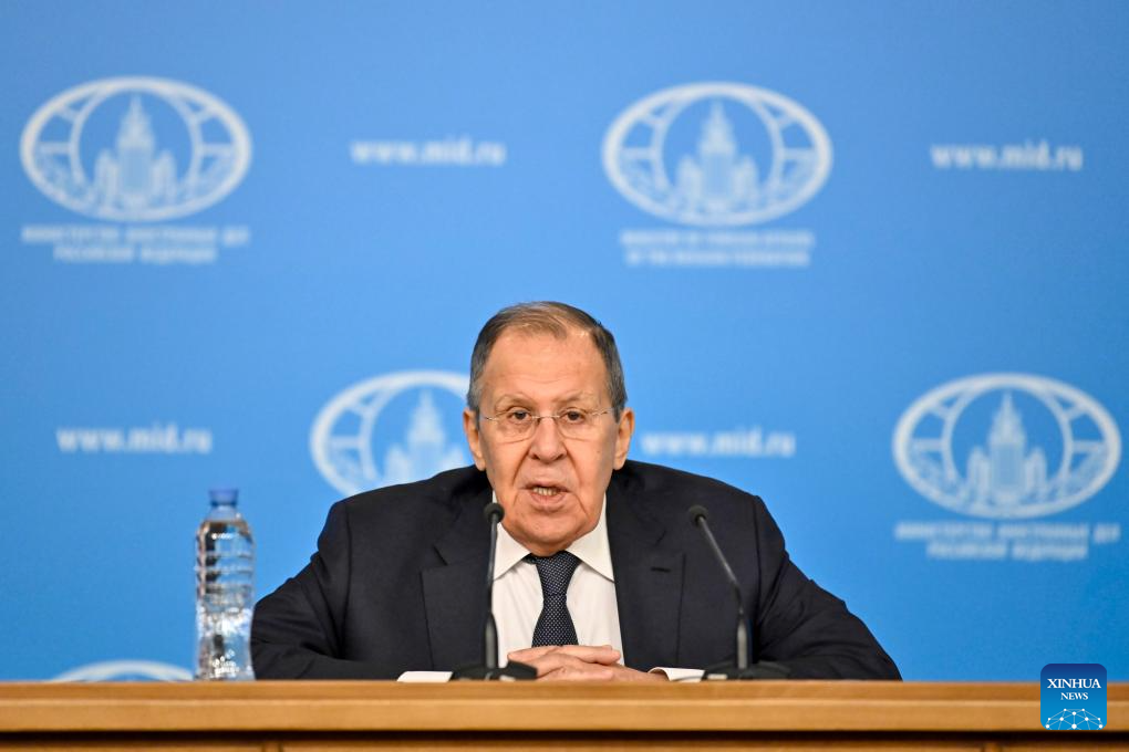 Russian Foreign Minister Sergei Lavrov answers questions during his annual press conference in Moscow, Russia, Jan. 20, 2026. (Photo by Alexander Zemlianichenko Jr/Xinhua)