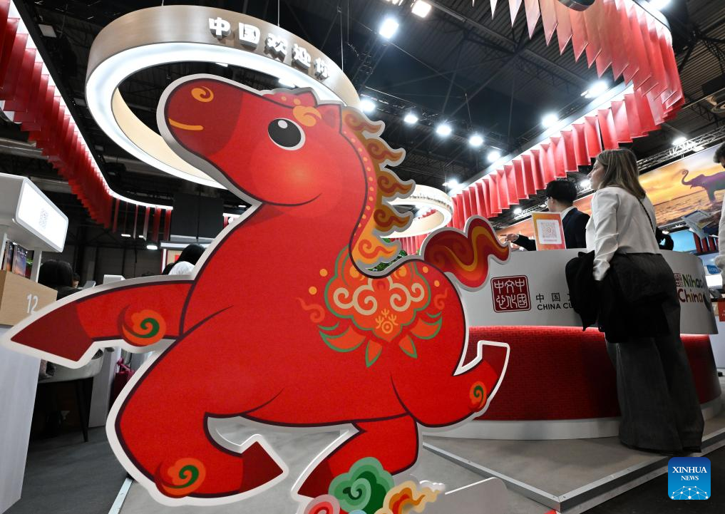 Photo shows a horse cutout at the booth of China during the 2026 FITUR international tourism exhibition in Madrid, Spain on Jan. 22, 2026. The booth of China held its opening ceremony at the 2026 FITUR international tourism exhibition in Madrid on Thursday. (Xinhua/Cheng Min)