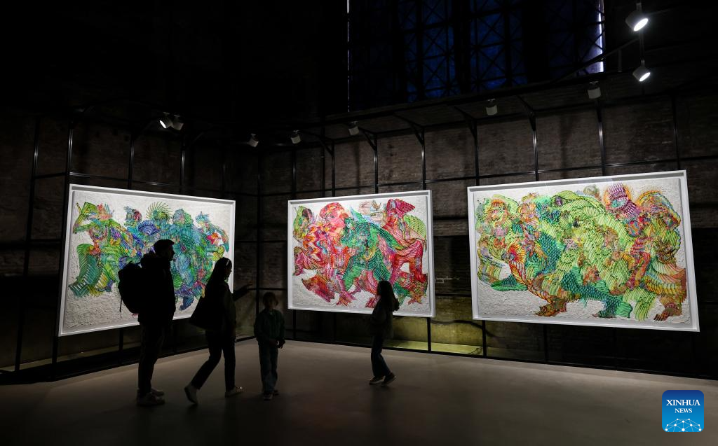 People visit the exhibition "Metamorphosis" in Baths of Diocletian of the National Roman Museum in Rome, Italy, April 1, 2026. The exhibition presents the contemporary Chinese artist Wu Jian'an's reflection on the theme of transformation through a dialogue between Eastern and Western traditions. (Xinhua/Wang Kaiyan)