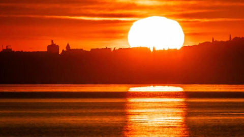 Scenery of sunrise over Adriatic Sea in Split, Croatia
