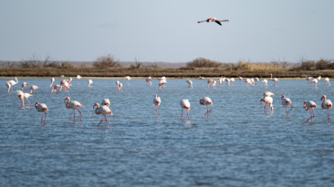 Flock of flamingos pictured in Kazakhstan